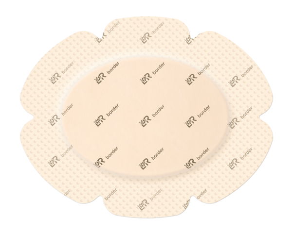 - Učinkovito obvladovanje izločka: Večplastna struktura, ki vključuje vpojno poliuretansko peno in supervpojno jedro (v standardni različici »border«, za razliko od »border lite«), omogoča dinamično, vertikalno vpijanje izločka v oblogo, kar zmanjšuje tveganje maceracije in vzdržuje optimalno vlažno okolje rane.
