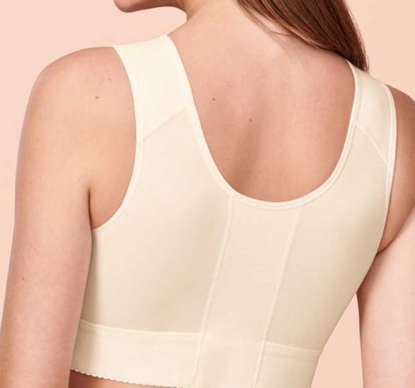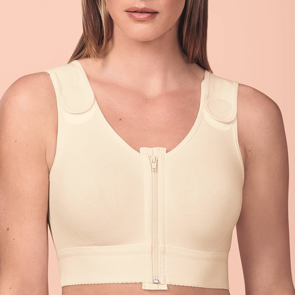 Kompresijski modrček po operaciji Anita Care 1198X z visoko stopnjo kompresije – zagotavlja optimalno stabilizacijo oblike in imobilizacijo operirane dojke po vseh vrstah estetskih operacij. Brezšivni, oblikovani košarici sta dvojno podloženi in izdelani iz raztegljivega bombažnega materiala. Stranska opora med plastmi omogoča nadzorovan kompresijski učinek na stranskem spodnjem delu prsnega koša vse do naramnic.
